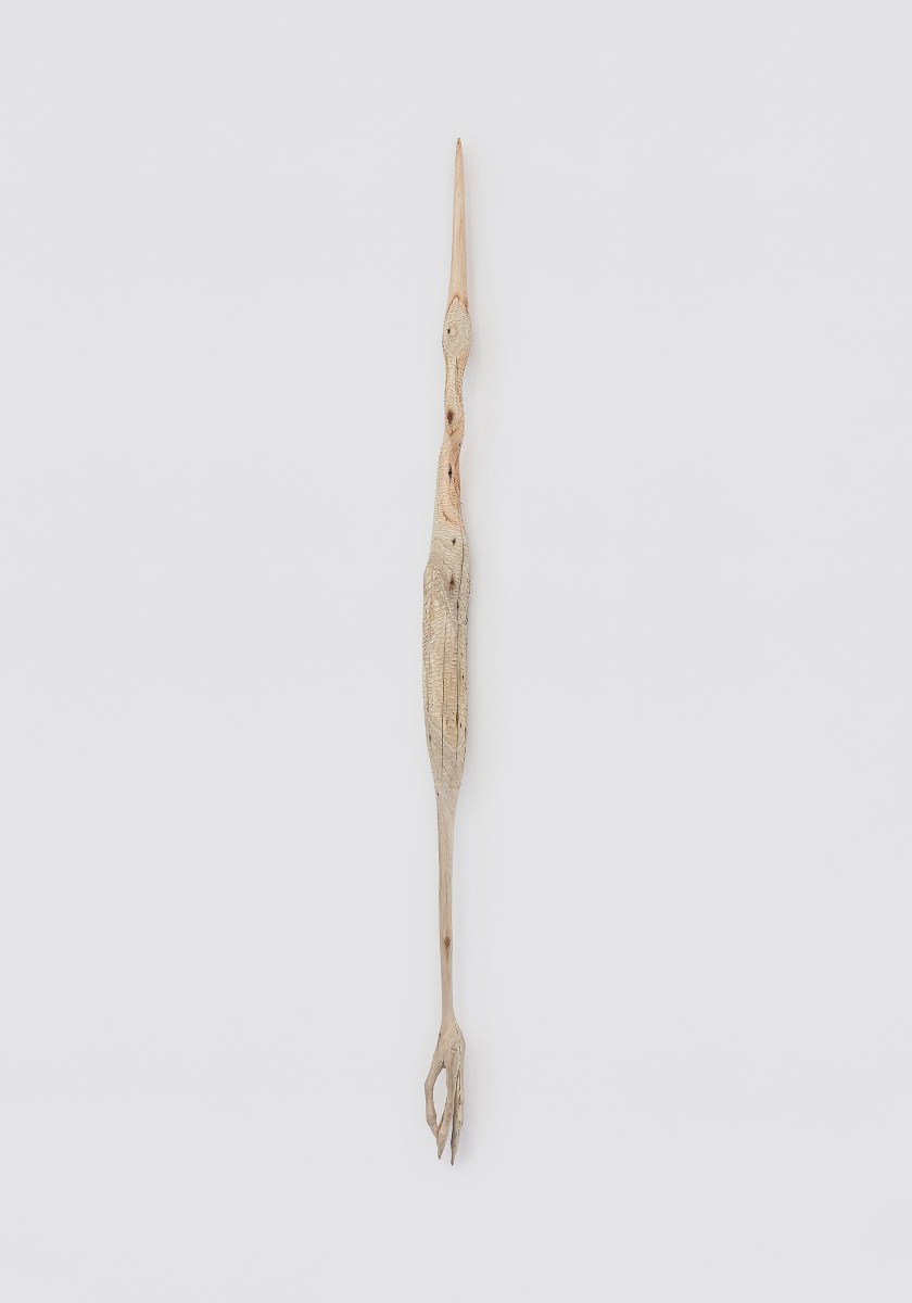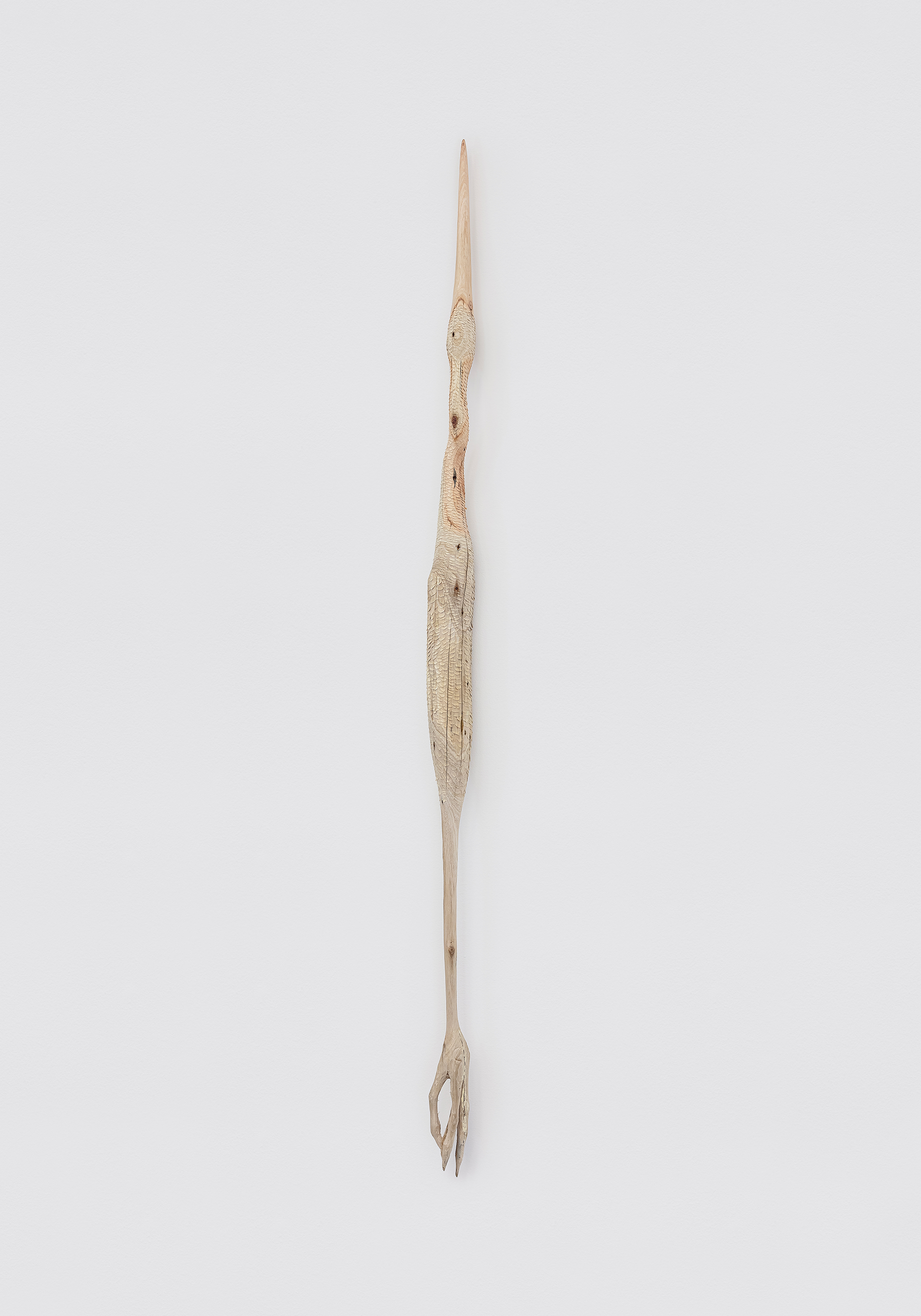 Published 19/10/2025 at 1890 × 2700 garça III, 2025 garça III, 2025 escultura em madeira (eucalipto) 151 x 7 x 8cm foto Filipe Berndt