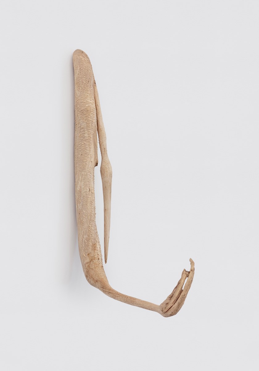 Published 19/10/2025 at 1890 × 2700 garça II, 2025 garça II, 2025 escultura em madeira (eucalipto) 92 x 15,5 x 74cm foto Filipe Berndt