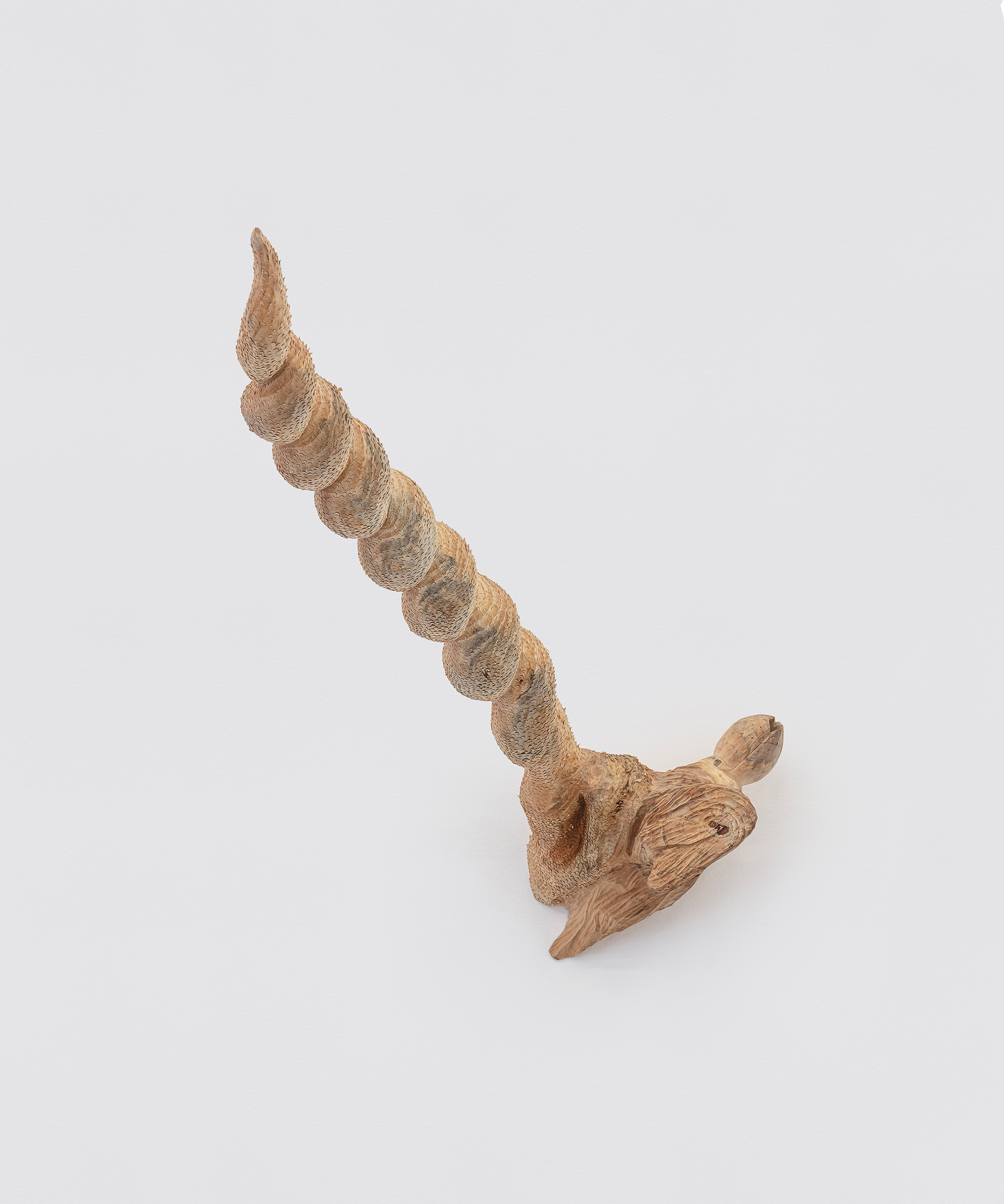 Published 19/10/2025 at 2025 × 2430 cornucópia, 2025 cornucópia, 2025 escultura em madeira (pinus) 87 x 24 x 22cm foto Filipe Berndt
