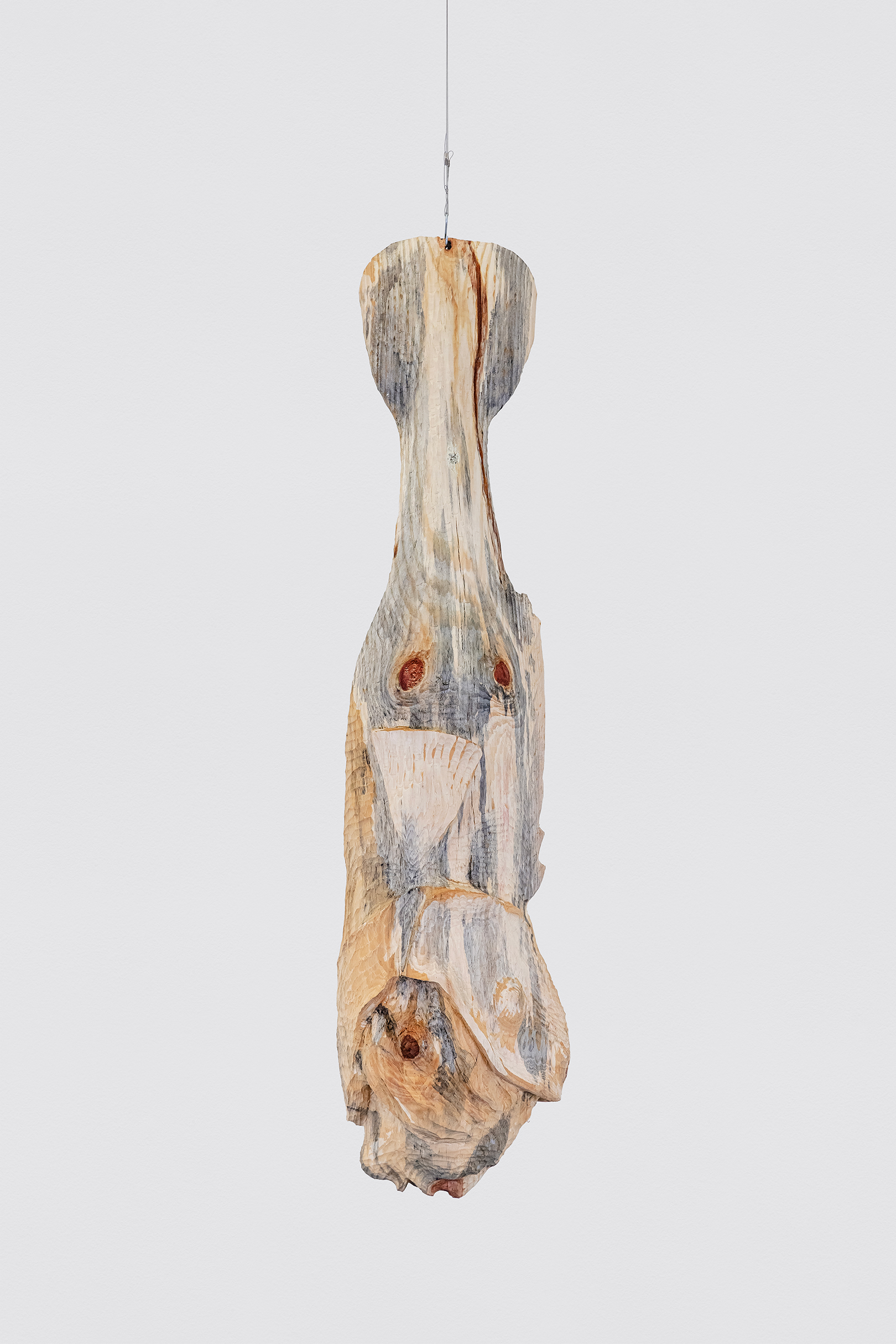 Published 19/10/2025 at 1620 × 2430 traíra, 2025 traíra, 2025 escultura em madeira (pinus) 146 x 26 x 36cm foto Filipe Berndt