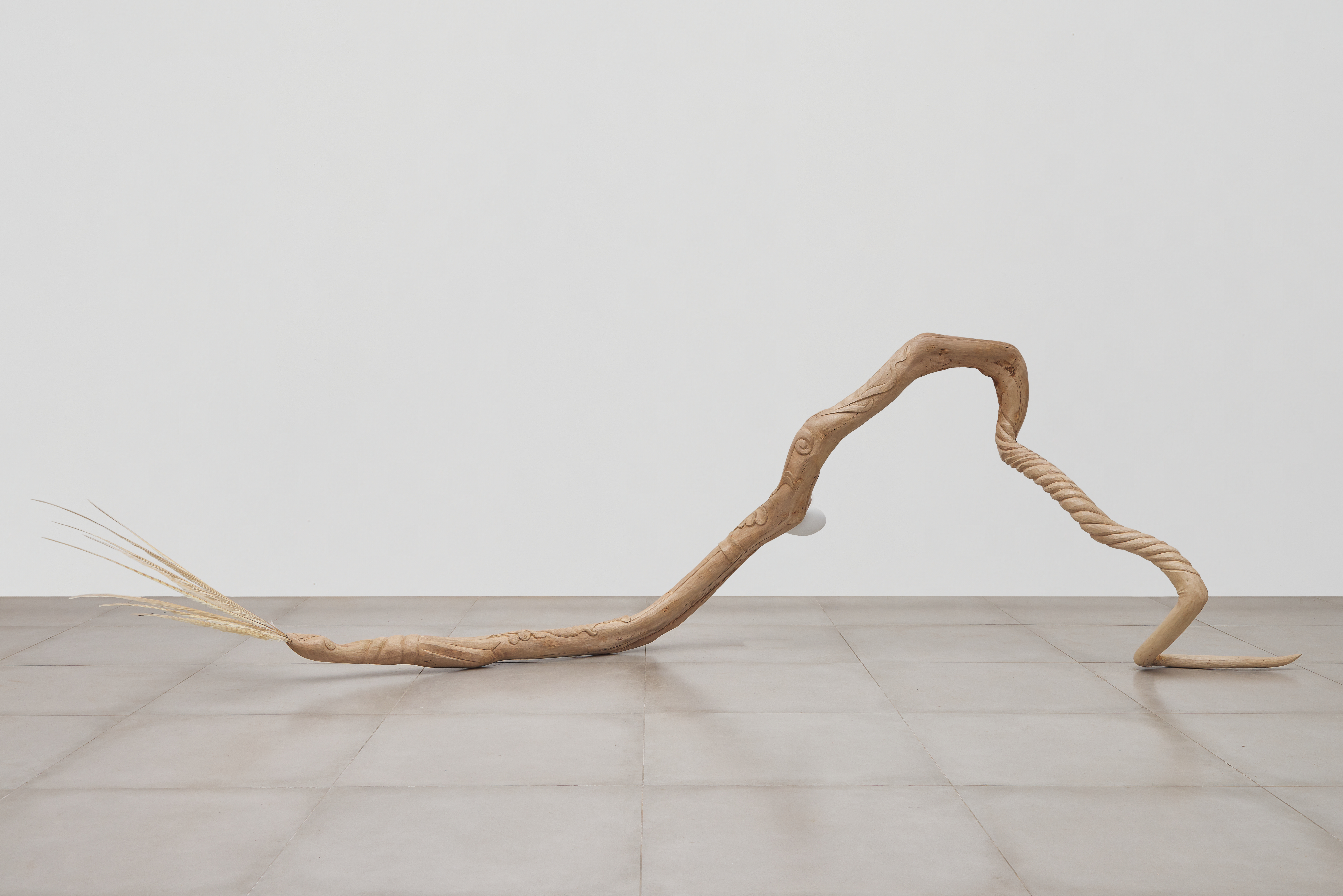 Publicado 16/04/2024 em 8103 × 5405 em início ← Anterior Seguinte → caninana, 2023 caninana, 2023 escultura em madeira (eucalipto) e penas 80x50x290cm foto: Rafael Salim Gosto Carregando...