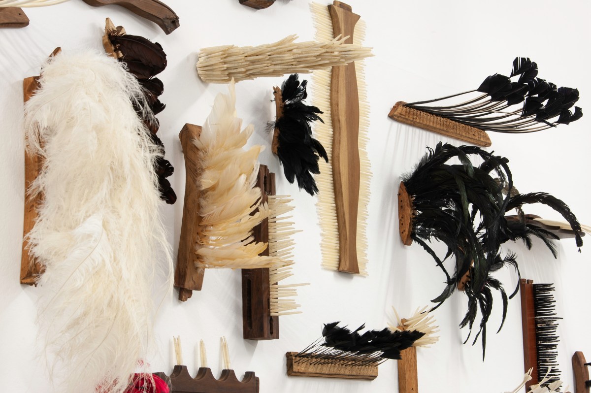 Published 29/04/2019 at 4724 × 3144 Luto Tropical, 2017 (detalhe) Luto Tropical, 2017 painel com 52 peças em penas, crinas e madeira dimensões variadas Exposição Luto Tropical | Pasto Galeria, Buenos Aires, Argentina, 2019 | foto: Pasto Galeria