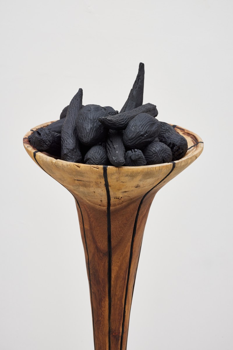 Published 19/12/2022 at 5427 × 8136 queima, 2022 (detalhe) queima, 2022 madeira, carvão e tinta à base de carvão 49×23,6×23,6cm foto: Rafael Salim